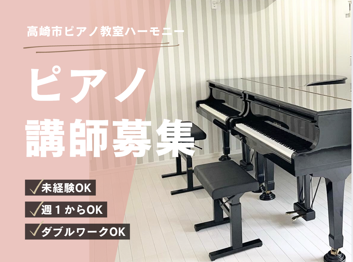 - 【高崎市ピアノ教室】ピアノ講師募集|子ども好き・音大卒歓迎【求人】